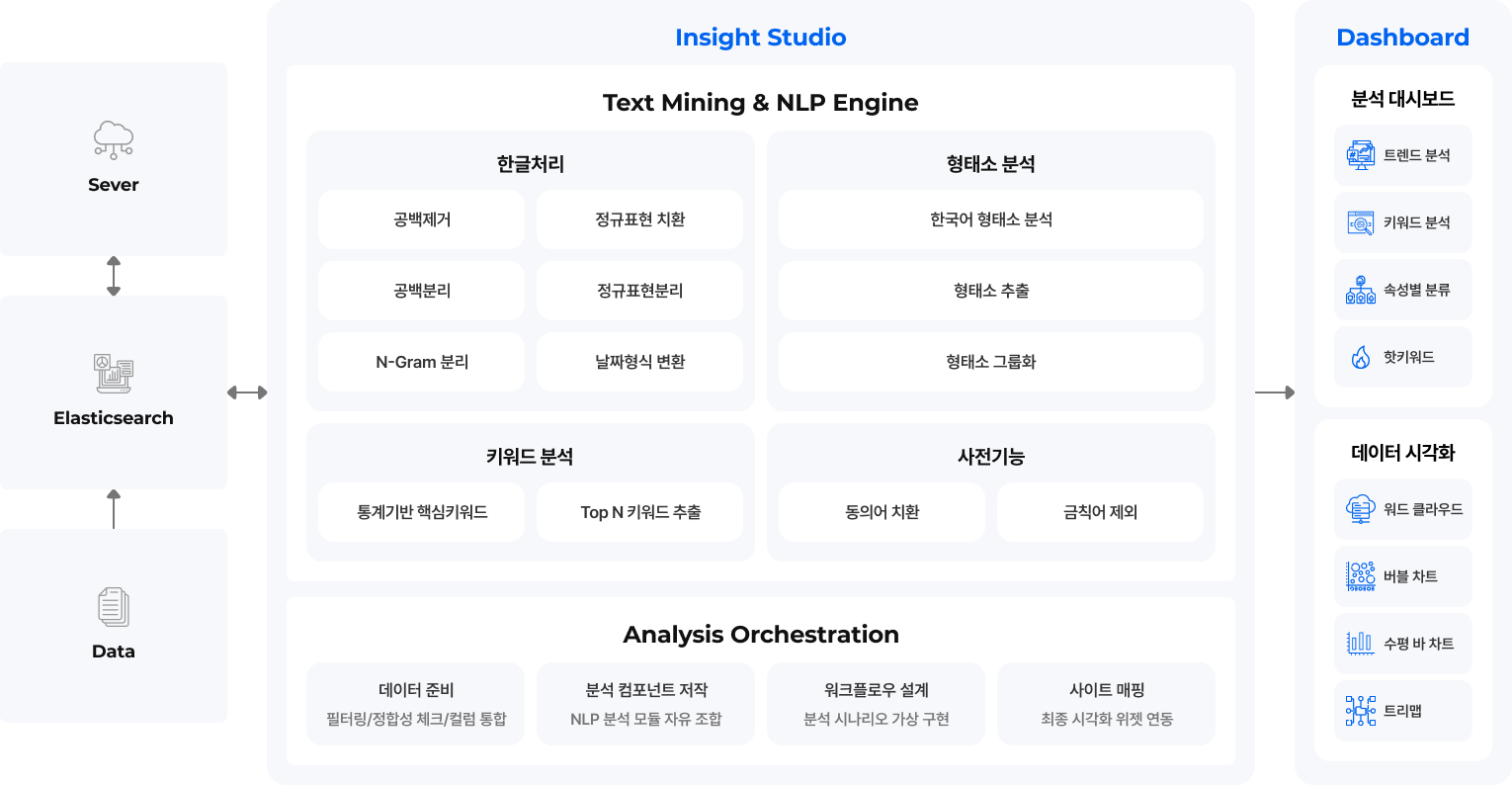 사용자 중심의 직관적 분석 환경과 정교한 AI 언어처리 기술을 결합해,