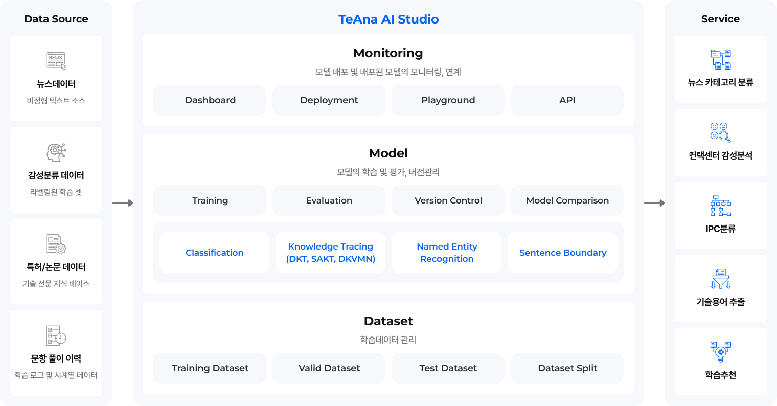 TeAna AI Studio는 수집·정제된 데이터셋을