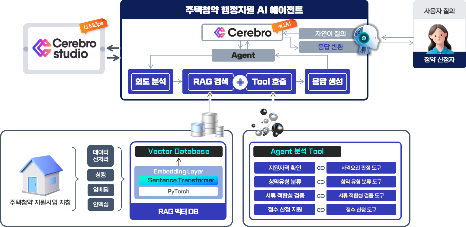 ‘세레브로’는 경량화된 생성형 언어모델로, 산업별 최적화된 파인튜닝이 가능하며, 빠르고 효율적인 서빙 환경을 제공한다. 또한 지식그래프 기반 RAG의 구조화된 지식을 실시간으로 참조하고 문맥을 정밀하게 추적하여 근거 중심의 응답을 제공할 수 있도록 특화 학습을 진행했다. 이를 통해 금융·의료·법률 등 규제 산업에서도 보다 신뢰성 있는 에이전트 운영이 가능하다. 텍스트 외에도 이미지·음성 데이터를 아우르는 멀티모달 입력을 지원해 각 분야에서 요구되는 다양한 데이터 유형을 폭넓게 다루며 한층 풍부한 컨텍스트를 제공한다.