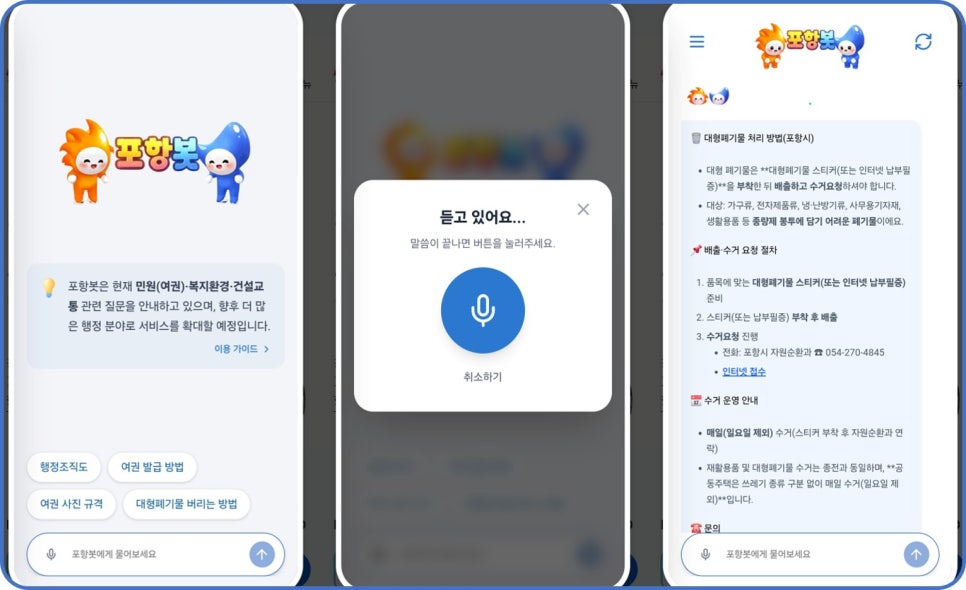 포항시 챗봇은 시민 문의가 가장 많은 여권 민원을 비롯해 복지·환경, 건설·교통 분야를 우선 적용 대상으로 선정했다. 시민들이 자주 찾는 핵심 행정 정보를 보다 신속하고 정확하게 제공할 수 있도록 구성했으며, 향후에도 아이브릭스의 운영 서비스를 통해 적용 범위와 상담 기능을 단계적으로 확대해 나갈 계획이다.